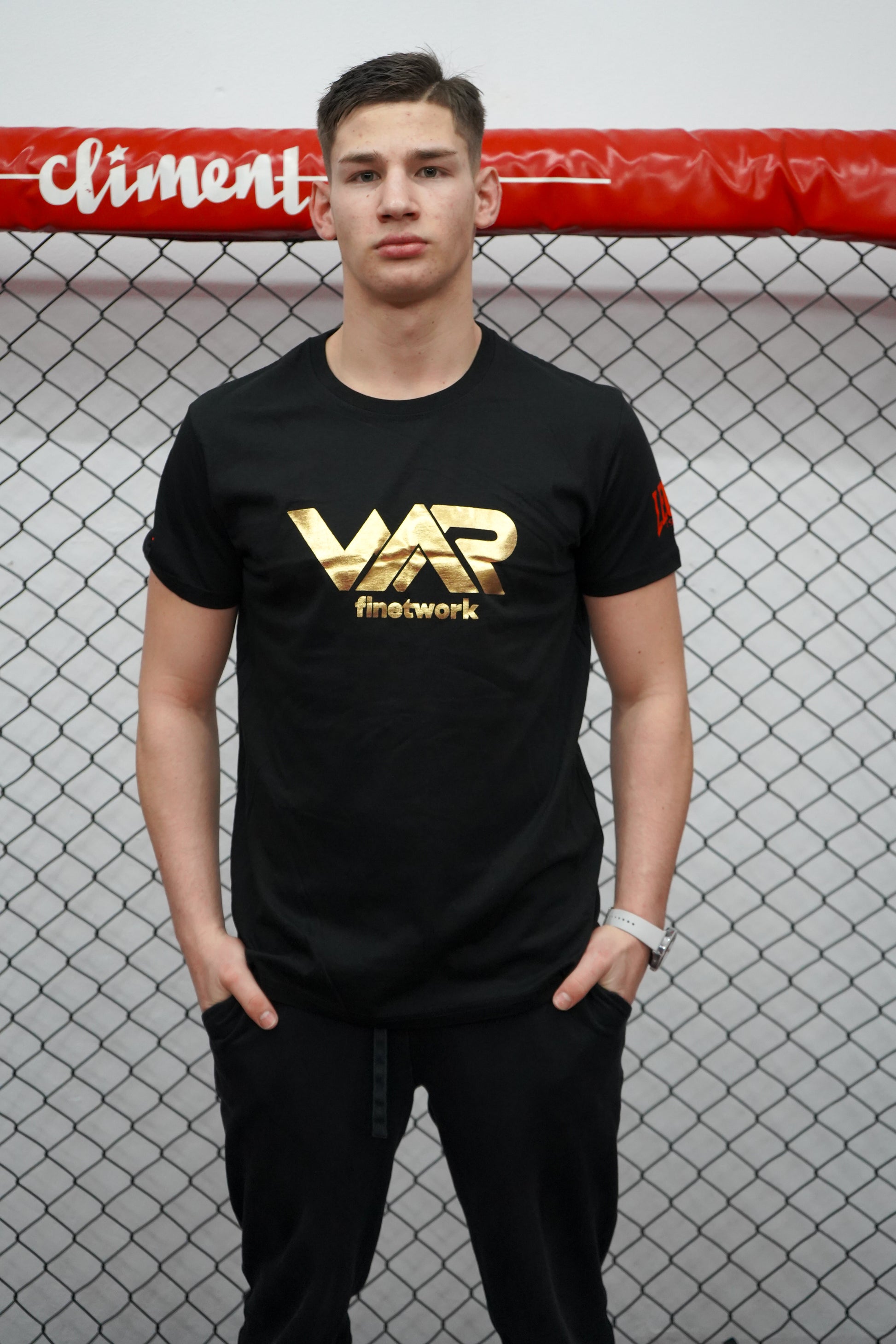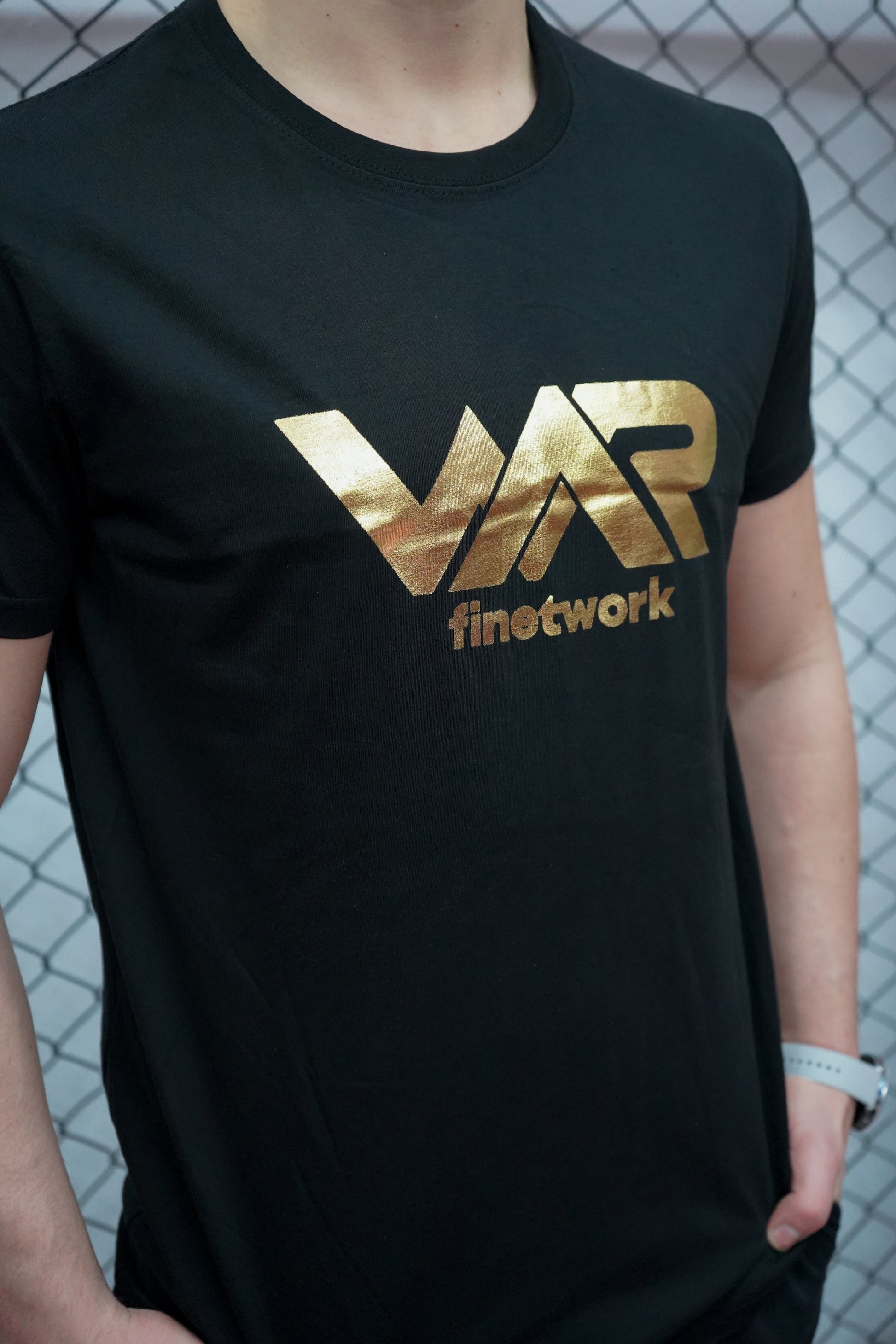 La camiseta exclusiva del evento War, letras en dorado.